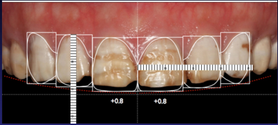 (3)分析微笑——确定前牙牙龈缘高度、长宽比例、大小比例,绘制牙齿形态完成DSD设计