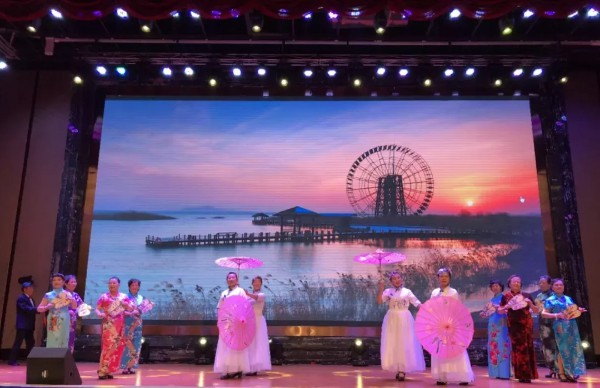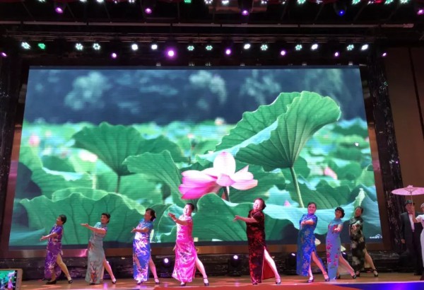 现场有大合唱、旗袍秀、舞蹈《江南情》、太极功夫扇、手风琴独奏等多个表演,叔叔阿姨们精神奕奕,博得满堂掌声。